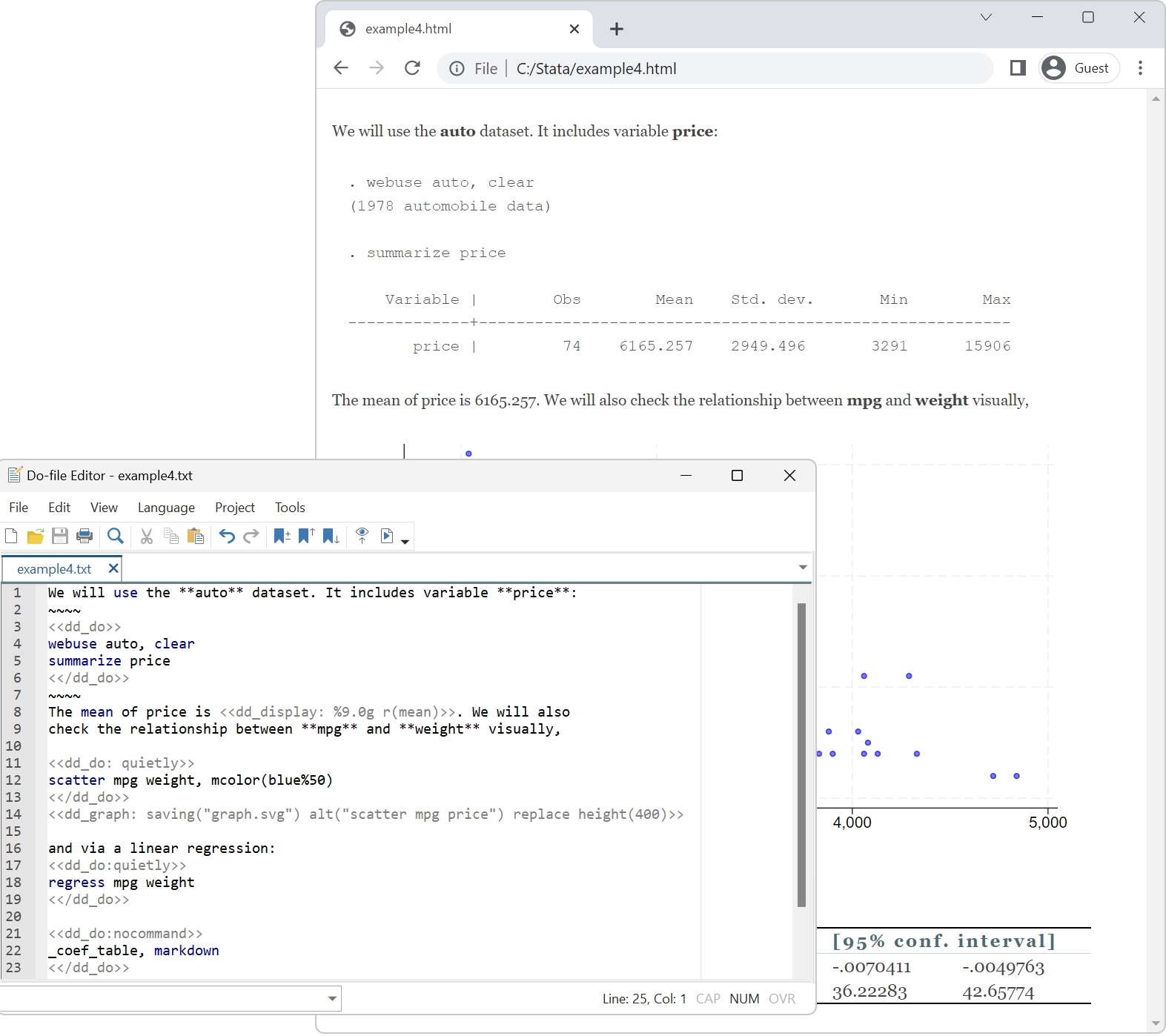 Algumas das coisas que você automatiza podem ser tão úteis que você deseja compartilhá-las com colegas ou até mesmo disponibilizá-las para todos os usuários do Stata. Isso também é fácil. Com apenas um pouco de código, você pode transformar um script de automação em um comando Stata. Um comando que suporta recursos padrão que os comandos oficiais do Stata suportam. Um comando que pode ser usado da mesma forma que os comandos oficiais são usados.